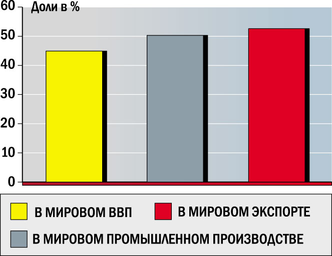 Япония стала родоначальником экономического реванша Востока над Западом. Результаты «японского чуда» подхватили «азиатские тигры»: Сингапур, Гонконг, Малайзия, Таиланд, Южная Корея. В наше время основной производственный потенциал мира сосредоточен в Китае и Индии. И, хотя промышленно развитые страны Запада (США, Канада и ЕЭС) продолжают контролировать мировую торговлю и глобальный финансовый рынок, лидеры развивающегося мира потеснили их с экономического олимпа.