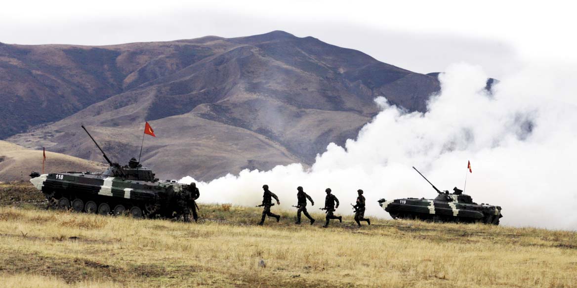 В ответ участники учений осуществляют активные антитеррористические операции. После ликвидации боевиков и стабилизации политической ситуации враждебное государство, которое и было инициатором всей волны террора, открыто нападает на Казахстан. И тогда на втором этапе учений отрабатывается ведение классической войны с вооруженными силами других государств.