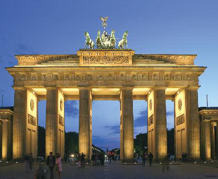 Бранденбургские ворота, построенные в 1791 году, являются символом не только Берлина, но и всей Германии. Они имитируют классический греческий портик с дорическими колоннами, а сверху их украшает четверка лошадей, которой правит богиня победы Виктория. Высота ворот составляет 26 метров, а ширина стен 11 метров.
