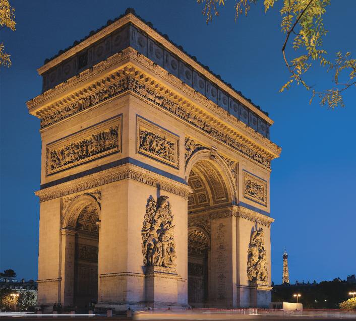 Триумфальная арка Парижа является самой большой в Европе. Её высота достигает почти 50 м, высота свода 29 м и ширина 45 м. Наполеон Бонапарт решил воздвигнуть ее, чтобы увековечить свою победу под Аустерлицем.