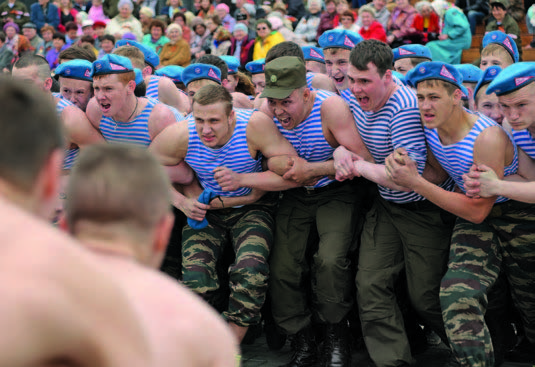 «Стенка на стенку» старинная традиционная русская забава, которая в Древней Руси была главным развлечением на ярмарках и различных праздниках. Самые массовые битвы проходили обычно на Масленицу и Красную Горку. Ещё эти мужские состязания назывались стеношный бой. Суть схватки такова: два строя сходились друг с другом в кулачной схватке, которые подчас бывали крайне жестокими и стоили участникам выбитых зубов или синяков.