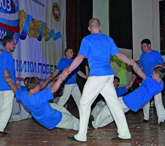 Главные овации сорвали ребята из Ногинского кадетского корпуса. Они привезли выступление, максимально насыщенное самыми разнообразными элементами, многие из которых могут показаться просто невероятными. Представительницы «слабого пола» жонглировали бревнами, лежали на гвоздях, продемонстрировали владение приёмами рукопашного боя и при этом оставались настоящими русскими красавицами.