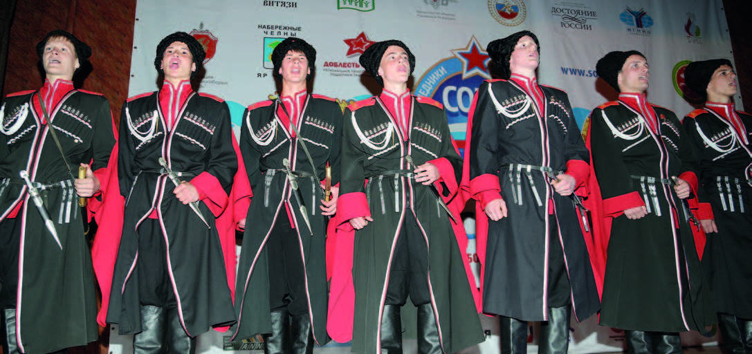 Несколько команд на Сборе сделали основную ставку на национальные традиции своего края. Парни из Курганинского казачьего кадетского корпуса Краснодарского края вышли на сцену в традиционных казачьих костюмах, с шикарными кинжалами, патронташами, в казачьих папахах и, конечно же, с шашками, искусством владения которыми исконно славились казаки. Кадеты работали с шашками, показали небольшой театрализованный бой и исполнили на сцене казацкую песню.