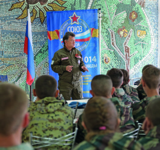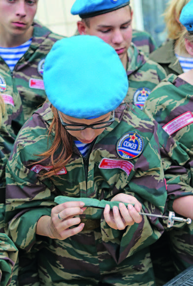 Отдельной темой шло обучение работе с оружием. Ветеран спецназа объяснил юным союзовцам меры безопасности при обращении с огнестрельным оружием, провёл инструктаж по тому, как обращаться с АК в условиях выполнения служебных задач.