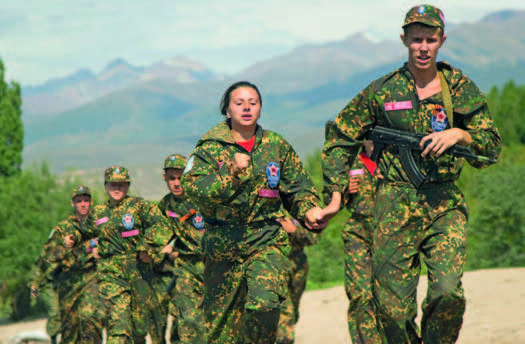 Последний участок асфальтированная дорога под палящим солнцем. Зато здесь нет ни подъемов, ни спусков. Можно было бы и прибавить в скорости, но именно здесь, на ровной и прямой, скорость не самая высокая: предыдущая сложная часть маршрута вымотала все силы. Но желание оказаться первыми не входит ни в какое сравнение с чувством усталости! Самые крепкие парни, а в некоторых случаях и девчонки, несут в руках по два, а то и по три автомата, другие тащат на себе ослабевших. Вот она та самая слаженность коллектива, умение работать в команде!