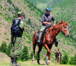 На помощь нам пришел местный пастух, который поднялся на лошади на вершину горы, куда пришли более 300 участников Сбора. Посадив девушку в седло, мы отправились вниз по ущелью, пополнив по дороге в высокогорной речке запасы воды. Знаток этих мест показал нам шумные водопады, угощал нас дикой смородиной.