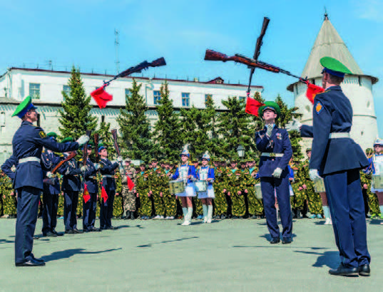 На Площади 1 Мая у стен Кремля более 600 лучших представителей кадетских корпусов и военно-патриотических клубов из 26 регионов Российской Федерации повзводно выстроились в линию. Под встречный марш оркестра были внесены Государственный флаг России, Знамя Победы, флаг Татарстана и боевое знамя Панфиловской дивизии. В исполнении военного оркестра Казанского высшего командного военного танкового училища прозвучали гимны России и Татарстана. Раздался залп салюта. Собравшихся приветствовал заместитель Премьер-министра Республики Татарстан Министр образования и науки Энгель Навапович Фаттахов.
