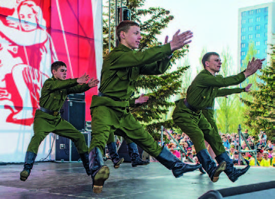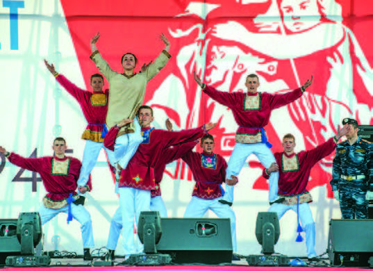 Лучшие номера культурной программы ребята из разных регионов России показали на праздничном концерте в Парке Победы. На сцену под национальные ритмы поочередно врывались в красочных фольклорных нарядах то джигиты Дагестана, то охотники Якутии, то казаки. Зажигали удалью и весельем казанские татары, трогали душу и восхищали напевы и восточная пластика крымских татар… Представляя свои номера, часто включающие, сообразно обстановке, силовые, гимнастические и даже боевые элементы, ребята всецело владели вниманием публики, которая то и дело взрывалась аплодисментами. Детвора буквально облепила всю стоящую на постаментах Парка Победы военную технику, чтобы лучше видеть происходящее на сцене и возле нее.