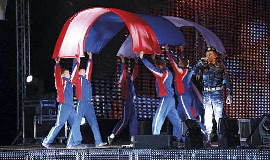 Вечер завершился концертом, посвященным Дню России. На сцене выступили команды из разных российских городов с музыкальными и спортивными постановками. Поддержать ребят и поздравить участников Сбора с Днем российского флага приехали военнослужащие 102-й российской военной базы в городе Гюмри во главе с командиром базы – генерал-майором Владимиром Устиновым. Ночью небо озарилось великолепным салютом, что стало для многих сюрпризом.