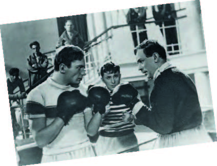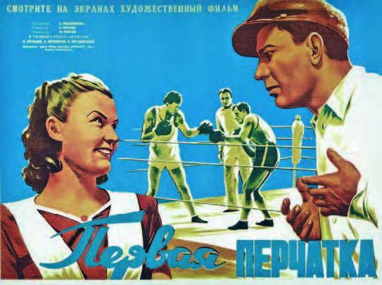 В годы Великой Отечественной войны спортивное кино не снималось – может, потому, что все спортсмены были на фронте, а без профессионалов спортивного кино не снимешь… Но как только война закончилась… Уже с 1946 года выходит в прокат ежемесячный киножурнал «Советский спорт». Начинается выпуск цветных спортивных лент. Среди них обратил на себя внимание документальный фильм «Молодость нашей страны» (1946 год, режиссеры С.И. Юткевич, И.М. Посельский, И.В. Венжер). Но особо полюбилась зрителю того времени, уставшему от войны, «Первая перчатка» (1946 год, режиссер А.В. Фролов). Жизнерадостная комедия о спортсмене «от природы» и препятствиях на его пути к чемпионскому титулу. Роль простодушного боксера исполнил видный актер Иван Переверзев, а его тренера сыграл мастер комедийного жанра Владимир Володин («Цирк», «Волга-Волга»). Юмор и оптимизм сделали картину одним из лидеров советского проката.