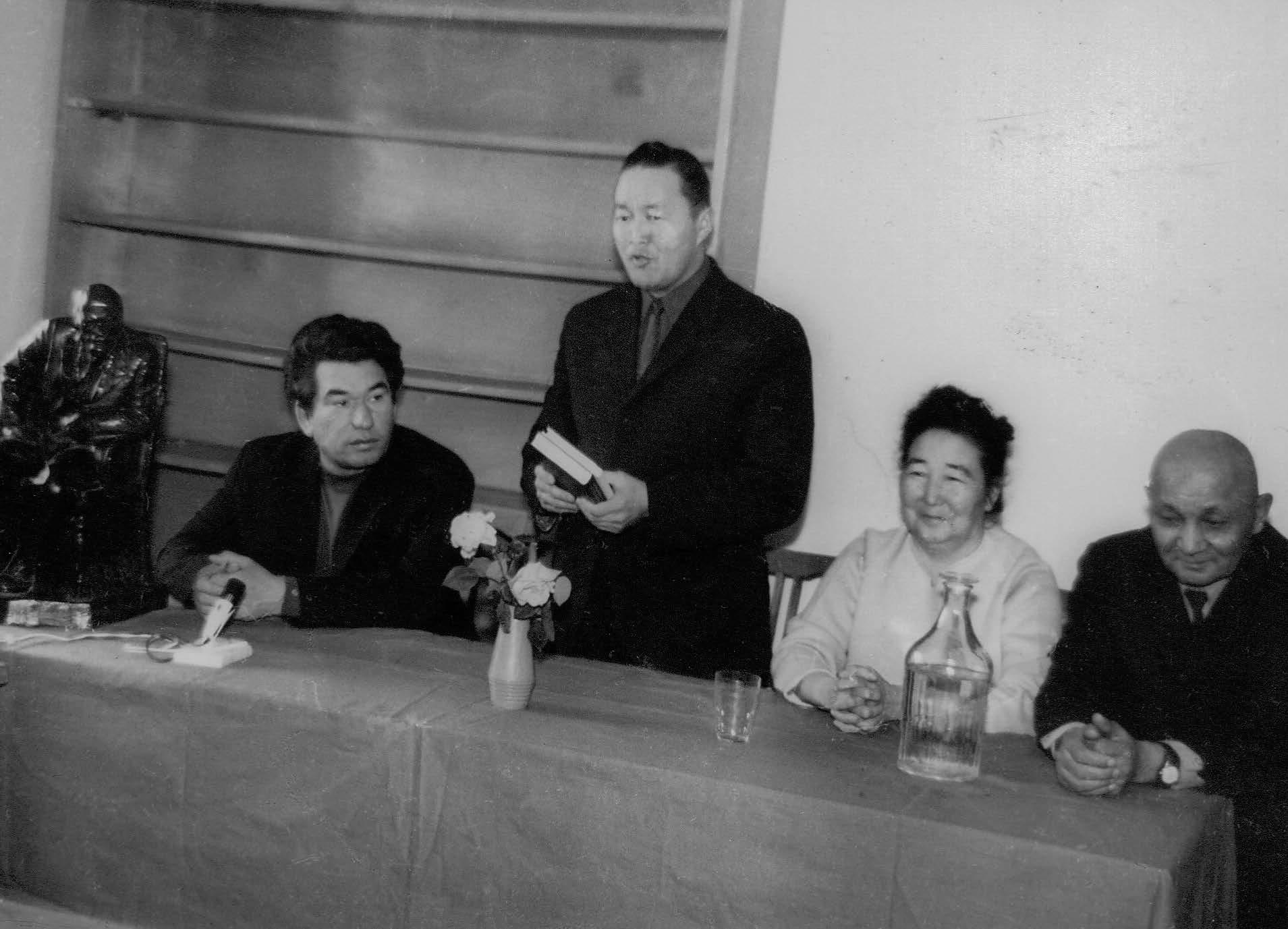 Фото из семейного архива Айтматовых–Дженчураевых, сделанное в 1968 году, зафиксировало встречу Чингиза Торекуловича Айтматова с солдатами и офицерами 8-й гвардейской мотострелковой дивизии имени Героя Советского Союза И.В. Панфилова. Во втором ряду второй справа – Джаманкул Дженчураевич Дженчураев – легендарный советский пограничник и автор книги «Фронтовые записки пограничника». Визит двух писателей к панфиловцам был не случаен. Волею судьбы став родственниками, они оказались духовно близкими людьми, объединёнными общей памятью о Великой Отечественной войне.