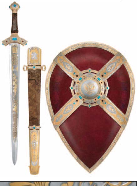 Хотя защитное вооружение, типа щита, мы изготавливаем. Кстати, эти щиты, как мне кажется, получаются у нас достаточно эффектными. С гербами, украшениями… Один из них мы сделали для Президента Республики Казахстан Нурсултана Назарбаева. В комплекте с мечом