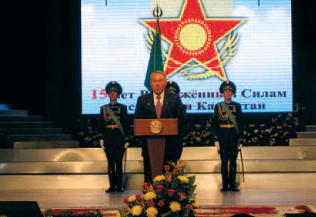 Наша поездка в столицу Казахстана проходила накануне Дня Победы. Мы прилетели в Астану 7 мая и узнали, что в этот день в Казахстане тоже самый что ни на есть праздничный казахстанской армии исполнилось 15 лет. Можно много рассказать и о теплой встрече с генералом армии Мухтаром Алтынбаевым, и о праздничном концерте в честь вооруженных сил Казахстана, и о приеме президента Нурсултана Назарбаева для ветеранов Великой Отечественной, руководства армией, и о дружеских встречах в Астане… Но поговорим мы о другом. О тех впечатлениях, которые вынесли из поездки. Поделимся некоторыми наблюдениями о ситуации, которая сложилась в Казахстане как раз накануне визита туда Президента России Владимира Путина.