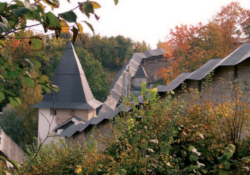 Центр монастыря расположился в овраге, а стены -- на окружающих холмах. Такое нестандартное и стратегически спорное размещение придает его территории незабываемый колорит. Перед нами ландшафтный дизайн и многоярусная архитектура наших предков.