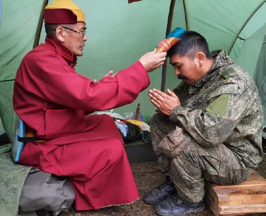 — Летом 2009 года Верховному Главнокомандующему ВС РФ В.В. Путину было направлено обращение Межрелигиозного совета России, под которым поставили свои подписи Патриарх Московский и всея Руси Кирилл, высшие исламские муфтии, главный раввин и буддийские ламы. В нём обосновывалась необходимость возрождения в рядах Вооружённых сил России института военных священников. 21 июля 2009 года было принято постановление о восстановлении в рядах Вооружённых Сил России института военного духовенства. Военные священники снова стали частью Российской армии и несут свою ответственную службу вместе с солдатами, оказывая духовную поддержку там, где это необходимо. Как священники-буддисты организовали взаимодействие с армейским руководством, как они представлены в Вооружённых силах РФ?