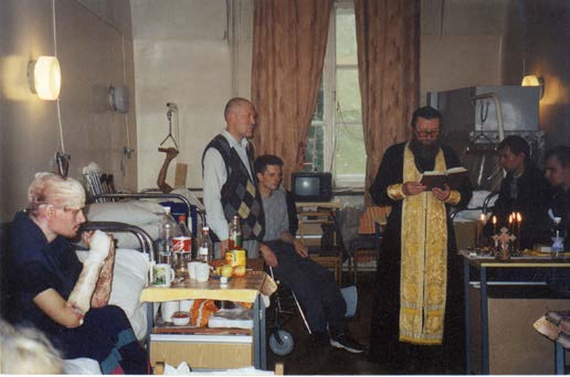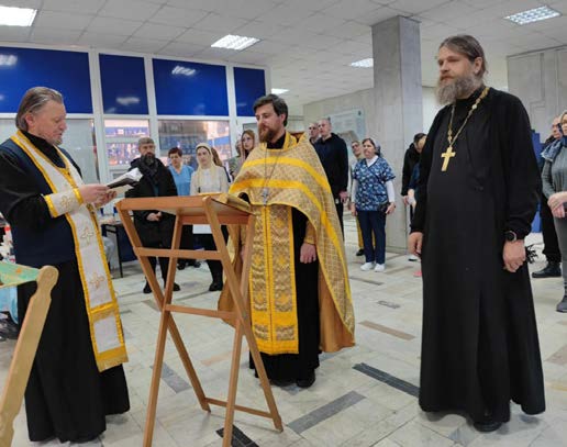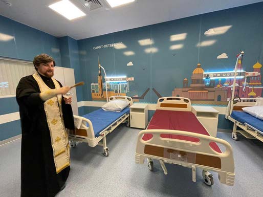 Священнослужители приходят в палаты для совершения Таинств Церкви. На настоящий момент Таинство крещения совершено над более чем 500 пациентами с начала 2022 года.