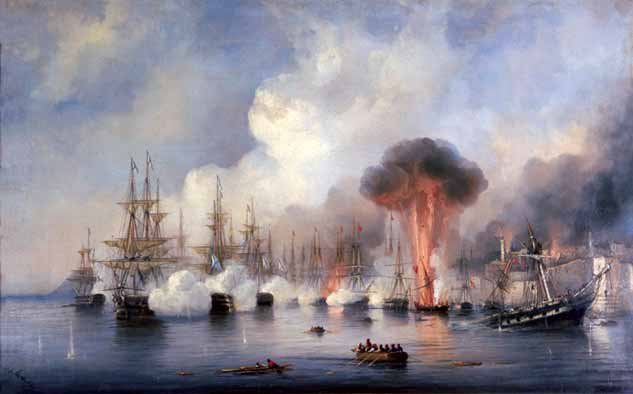 Наваринское сражение, пожалуй, решающее перед предстоящей войной между Турцией и Россией, было настоящим испытанием и для Нахимова, который получил первый серьезный военный опыт, из которого вышел с честью. Командуя батареей на линкоре «Азов», он сумел проявить и свои организаторские способности, дважды спасая корабль от, казалось бы, неминуемого пожара, и артиллеристский талант, одновременно отстреливаясь от 5 вражеских кораблей.