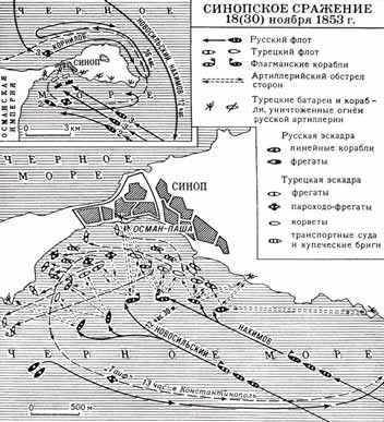 В октябре 1853 года Турция, подстрекаемая Англией и Францией, объявила войну России. Нахимов, получив донесение о намерении турок высадить на закавказский берег целый десантный отряд, отправился на поиски вражеской эскадры с единственной целью уничтожить. «В случае встречи с неприятелем, превышающим нас в силах, я атакую его, будучи совершенно уверен, что каждый из нас сделает свое дело» эта знаменитая фраза Нахимова, сказанная перед походом, ныне выгравирована на постаменте памятника адмиралу в Севастополе.