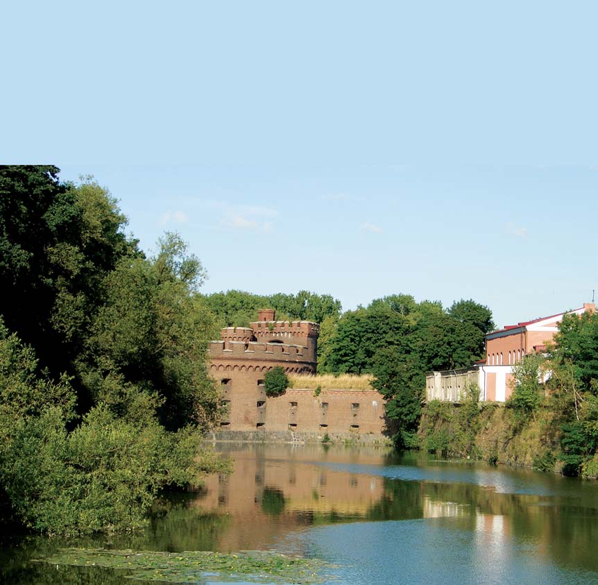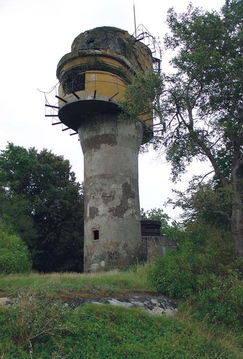 Весь берег пролива нашпигован немецкой железобетонной фортификацией. На фото слева наблюдательная вышка. Но наиболее масштабным оборонительным сооружением является старая крепость, на плане образующая пятиконечную звезду (на фото внизу). Она окружена настоящим рвом, а ее стены еще в XVIII веке были засыпаны землей, на которой выросли деревья. Нижние этажи крепости были затоплены немцами перед сдачей советским войскам, попытки изучить их в послевоенные годы и, тем более, осушить не увенчались успехом. Сейчас крепость во власти военных.