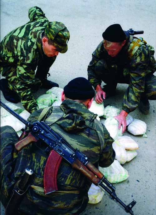 Конечно, с достоверной точностью определить, каково соотношение задержанных и успешно переправленных через границу партий, невозможно. Существуют разные методики. Например, в пограничном разведдепартаменте считают, что на один задержанный килограмм приходится 10 «пропущенных». Цифра эта весьма и весьма приблизительна. Наркоделец, переправивший успешно через границу свой «товар», не кричит же на каждом углу, как ему ловко удалось объегорить погранцов. Старлей Осколков тоже не питал иллюзий в отношении того, сколько переправ ему (и его товарищам по оружию) не удалось предотвратить. Раз героин возникает и в России, и через нее уже в Европе, значит «караваны идут». А уж сегодня, когда произошла «смена караула» на Пяндже, партии по 100 150 200 килограммов (именно такие партии, как правило, задерживали российские пограничники в последние годы) стали перехватывать на
