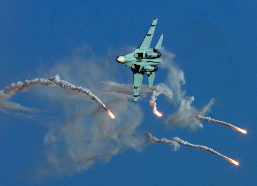 Тут воздушная разведка вскрыла позиции двух батарей ПВО противоборствующей стороны. И наблюдатели вновь увидели в воздухе авиацию. «Изюминкой» этого действа стал российский фронтовой бомбардировщик Су-34, который впервые получил крещение подобным учебным боем. Этот новенький «Сухой» прилетел в Белоруссию 16 сентября и базировался до проведения активной фазы на аэродроме 61-й истребительной авиабазы ВВС Белоруссии (Барановичи). Наблюдая за его самостоятельной атакой в составе авиагруппы бомбардировщиков Су-24М и Су-27СМ, Дмитрий Медведев, наверное, мог поделиться с белорусским коллегой своими впечатлениями об этой новинке российской авиации. Ведь, как известно, в марте этого года во времяпосещенияЦентрапоказа авиатехники в подмосковной Кубинке Президент Медведев выполнил полет на Су-34. Эти самолеты в перспективе составят основу ударной мощи российскойфронтовойавиации. В прошлом году Минобороны России и компания «Сухой» подписали государственный контрактнапоставку ВВС России 32 Су-34. Первые машины уже начали поступать в Липецкий центр боевого применения и переучивания летного состава ВВС России, откуда один из них и совершил полет в Белоруссию для участия в учении «Запад2009».