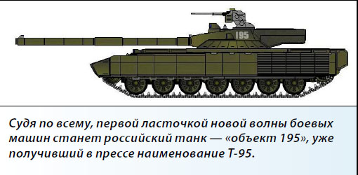 Появятся ли в строю и на поле боя новые машины, пока находящиеся на чертежных столах? Скорее всего, да, но их будет очень немного, и похвалиться новинками смогут буквально единицы стран из числа тех, что сегодня производят основные боевые танки. При этом, судя по всему, первой ласточкой новой волны боевых машин станет российский танк «объект 195», уже получивший в прессе наименование