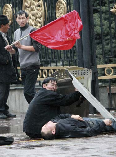 Однако на подходе к железным решеткам «Белого дома» так называется административная резиденция президента Бакиева на площади