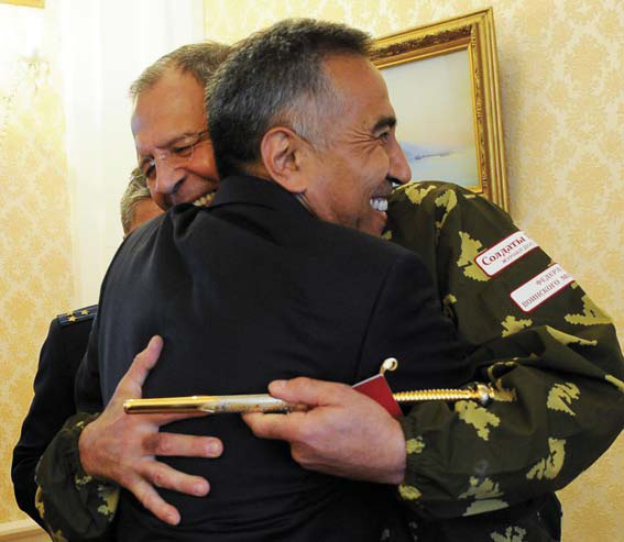 лётчик-космонавт Салижан Шарипов и главный редактор журнала «Солдаты России» Владислав Шурыгин.