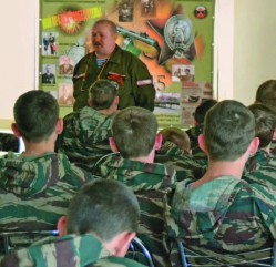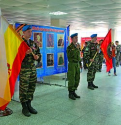 Парни из Рязанского казачьего кадетского корпуса имени генерала армии Скобелева, используя три огромных флага разных цветов, маршируя по сцене, составляли зрелищные композиции. Кадеты из Курганинского казачьего кадетского корпуса Краснодарского края вышли на сцену в традиционных костюмах. Ребята из Дагестанского кадетского корпуса города Махачкалы вышли на сцену в национальных костюмах и сплясали горячий кавказский танец лезгинку! Динамичную программу, наполненную элементами рукопашного боя, показал военно‐спортивный клуб «Олимп» из Курска.