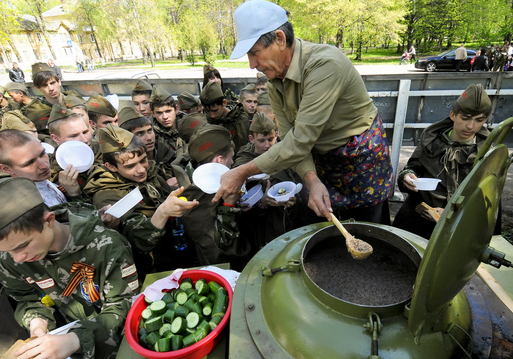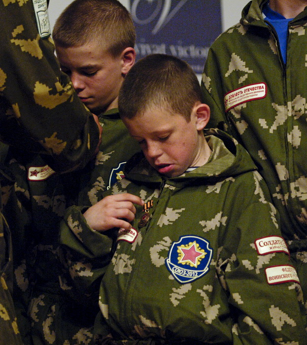 Ребят сразу же переодели в единую форму, стилизованную под маскхалаты советских разведчиков, пилотка с красной звездой и солдатская