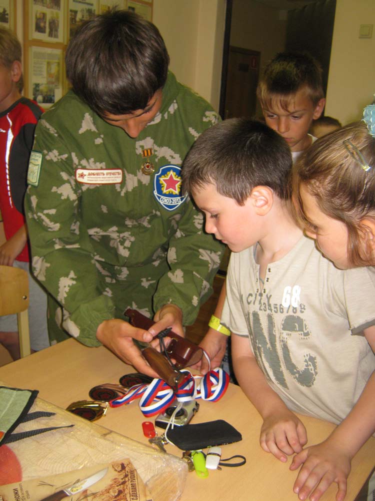 И слава Богу, в играх жизнь отдавать за друзей своих не надо. Но выложиться полностью белорусу, казаху, киргизу, латышу, литовцу, молдаванину, русскому, украинцу, эстонцу, чтобы победила единая команда, требовалось каждый день. Дети выкладывались до последнего. И побеждали! Долго не отпускали ребята участников «Союза». Задавали вопросы. В школьном музее, куда их привели, мальчишки с восхищением держали в руках настоящий спецназовский нож, винтовку, набор спортивных «летающих» ножей и походную газовую плитку призы, полученные нашими спортсменами на сборах. Особенно удивило ребят огромное количество медалей, полученных нашими спортсменами в личных зачетах: 11 за первые места,10 за второе и 10 за третье. И три золотая, серебряная и бронзовая за общекомандные победы в составе интернациональных команд.