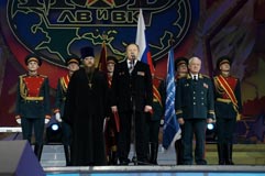 Песня «Праздничный марш»,написанная композитором Людмилы Лядовой на его стихи,ежегодно звучит на Красной Площади Москвы 9 мая -- в День Победы.
