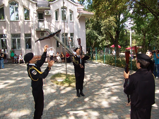 Вместе с воспитанниками Поста №1 Почетными караулами одесских школ № 77 и № 26 гости приняли участие в торжественном ритуале возложения венков и цветов к Вечному огню у памятника Неизвестному матросу на Аллее Славы. Церемония была приурочена к 72-й годовщине начала героической обороны Одессы в годы Великой Отечественной войны.