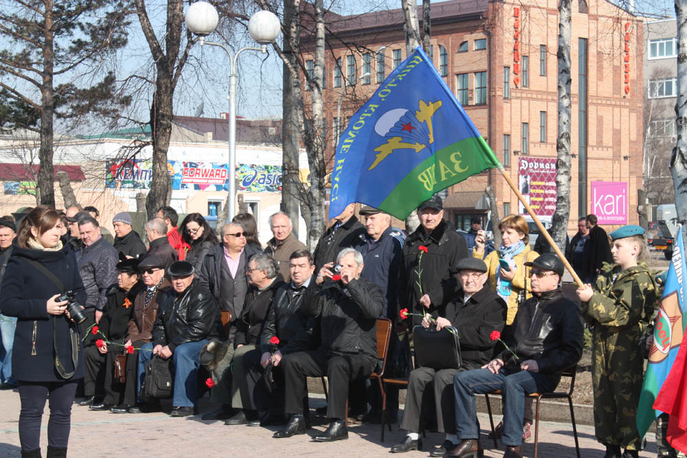 — Уссурийцы, я рад вас приветствовать! У нас многовековая славная история. Нам всем есть чем гордиться. В разные эпохи наши предки защищали Родину и верно ей служили. Мы не забываем эти героические страницы истории. И русский воин, будь то витязь, советский солдат или современный «вежливый человек», всегда будет внушать ужас врагам нашего Отечества и служить своему народу верной защитой. Наш автопробег пройдет по большинству городов России. В городе Владимире пять автоколонн - пять лучей звезды встретятся 5 мая, чтобы затем принять в Москве в День Победы принять участие в акции «Бессмертный полк». Наши активисты пойдут в голове колонны и понесут Знамя Победы, — с гордостью сказал Павел Евгеньевич.
