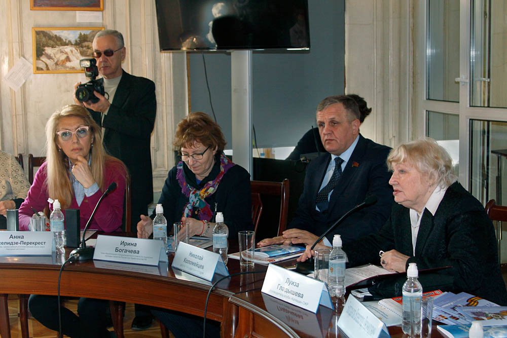 Одним из эффективных механизмов патриотического воспитания молодежи является проект «СОЮЗ — Наследники Победы», с которым собравшихся познакомила Анна Баканач, руководитель журнала «Солдаты России». Она рассказала о том, что при проведении Международного сбора «СОЮЗ-2013— Наследники Победы» в г. Одессе, незадолго до злополучных событий на Майдане, некоторые тревожные звоночки уже явно прослеживались, но организации, призванные противодействовать таким явлениям, такие как Россотрудничество и другие, пребывали в безмятежном состоянии, заботясь только о местечковых интересах. Участники круглого стола попытались вместе разобраться, почему общественным инициативам с многолетним положительным опытом так трудно получить поддержку государственного масштаба.