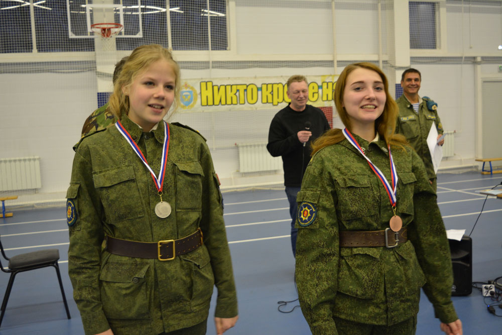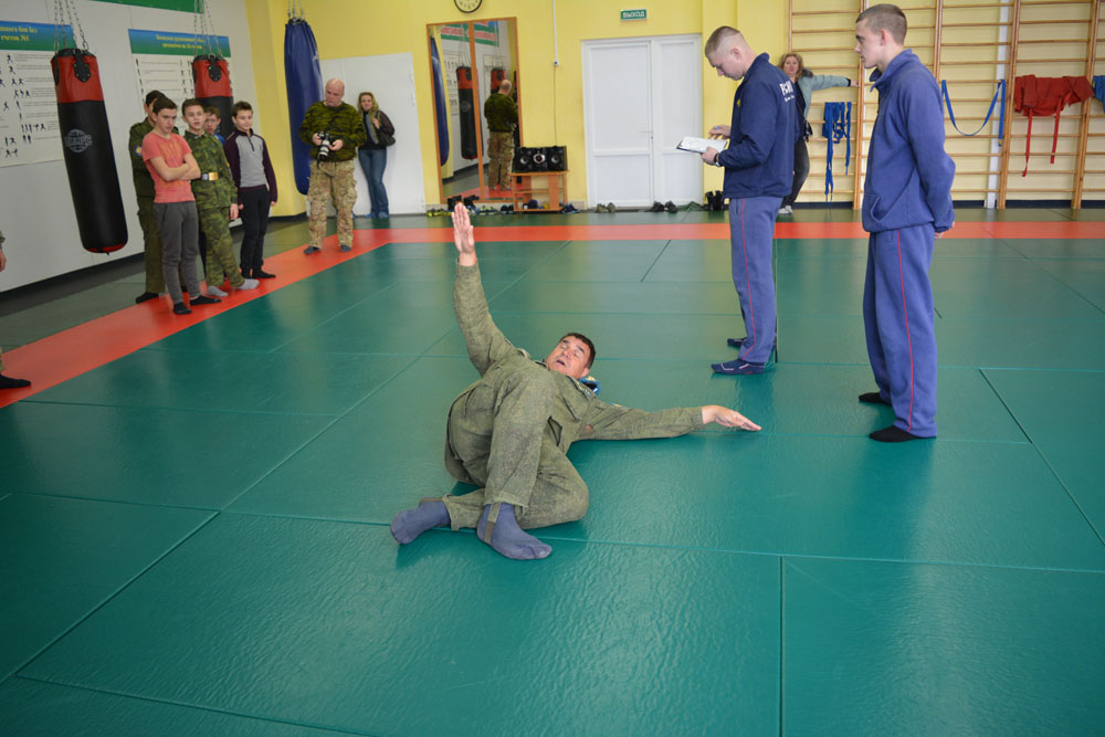 Соревнования состояли из трех этапов: Физическая подготовка, техника страховки и рукопашного боя и спортивного метания ножей. Судьями на этапах стали военнослужащие полка. А участниками стали и девчонки-кадеты…которые не потерялись в общем зачете соревнований.