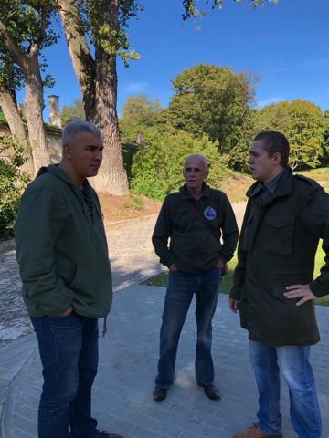 Встречали нашу делегацию Педагоги – инструкторы - Королев Олег и Белко Юлия оба историки, глубоко погруженные в тему и которые в прямом смысле слова, трогают историю руками, учат бережному сохранению памяти и трепетному отношению к Родине.
