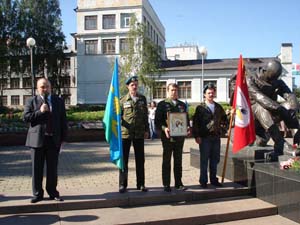 Празднование 77-ой годовщины Воздушно-десантных войск началось у памятника «Скорбящий воин». Открывал официальную часть советник Главы Республики Коми Александр Пасечник. "Мы всегда отдаем дань памяти своим погибшим друзьям, которых запомним молодыми. Несмотря на то, что уже почти четверть века прошло с окончания моей службы в воздушно-десантных войсках, я гордился и горжусь званием десантник. Именно званием, а не принадлежностью к роду войск. Все войска нужны. Все они выполняют свою задачу по охране и обороне страны. Но именно воздушные десантные войска являются резервом Верховного Главнокомандующего. Именно они в состоянии быстро и эффективно выполнить невыполнимые для других боевые задачи. 77 лет истории "крылатой пехоты" – это 77 лет истории мужества, отваги и славы. Эти качества отличают воинов-десантников и в мирной жизни", - отметил советник Главы Коми.