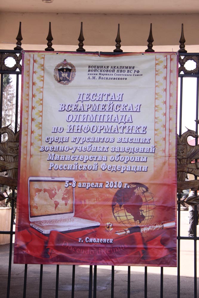 В целях совершенствования умений и навыков вот уже десятилетие (с 2001 года) в Вооруженных Силах России проводятся ежегодные Всеармейские олимпиады курсантов по информатике. И восьмой раз в своих стенах способную молодежь принимала Смоленская академия. Мы с гордостью отмечаем, что по итогам 2009 года академия была награждена переходящим вымпелом Главнокомандующего Сухопутными войсками «Лучшему высшему
